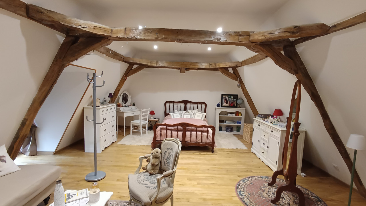 Remarkable vaulted cellar with rammed earth floor Adjoining room with fireplace, ideal for an intimate lounge or boudoir Veranda opening onto the garden Attic Harmonious proportions and brightness in all rooms