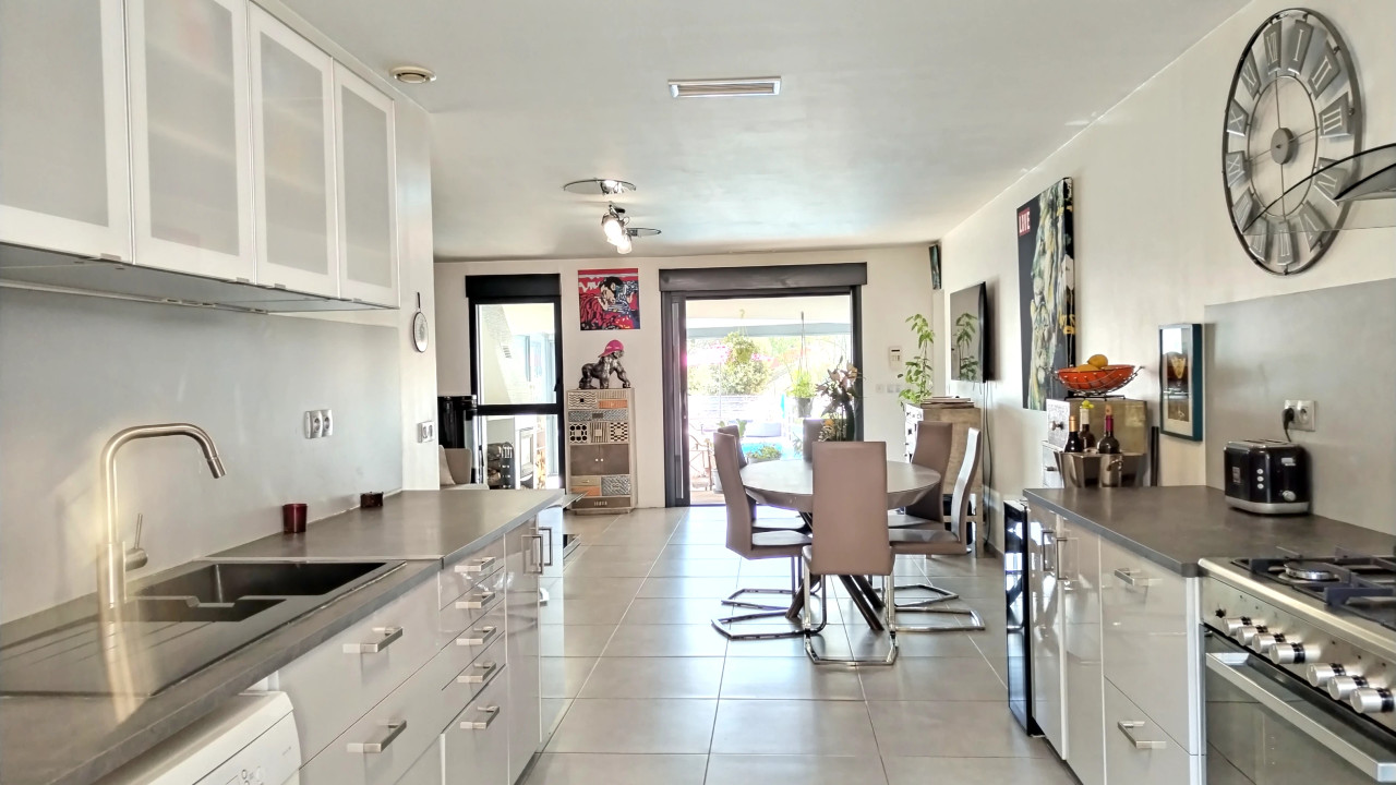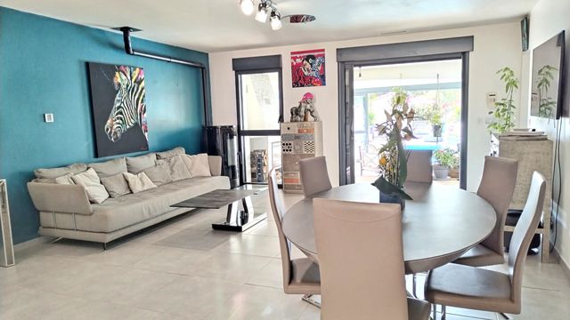 Contemporary 195 sqm house on a 2000 sqm plot, with veranda, swimming pool, carport, and parking spa