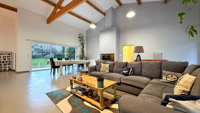 A41080EO24 - Just 5 minutes from Bergerac and its international airport, this contemporary 210 m² villa offers generous volumes, natural light and a peaceful setting with open views over the countryside and two ponds.
