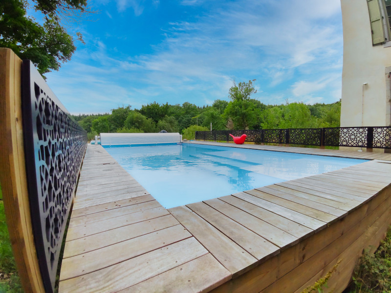 The heated pool is a joy in summer and the fireplaces make it a cosy winter retreat with two huge sun rooms enjoying wide views of the forest from the upper floors.