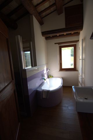 This South-West facing country house is located in a very panoramic spot in the countryside surrounding Montefiore dell’Aso, Petritoli and Montegiberto, in the province of Fermo. It is composed of a typical recently restored farmhouse, a winery and a plot of land of approx. 45,000 sq.m.