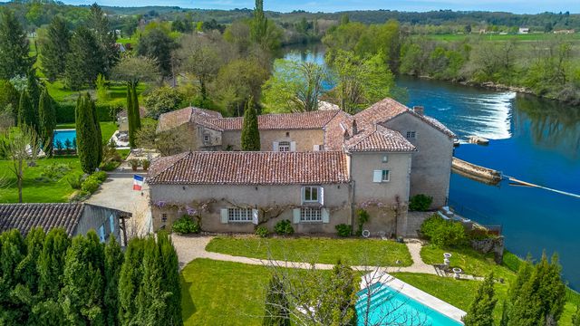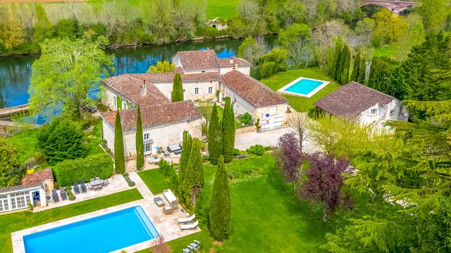 A36204SGU46 - Set on over a hectare of landscaped gardens beside the serene Lot River, this enchanting 18th-century estate offers a rare blend of history, luxury, and lifestyle. The beautifully restored stone buildings include 10 bedrooms, 8 bathrooms, and a wealth of elegant living areas — ideal for family life, hosting guests, or creating a high-end retreat. With two swimming pools, a tennis court, multiple terraces, and a separate guesthouse, the property is perfectly equipped for stylish entertaining and peaceful escapes. Original features such as a stone staircase, exposed beams, and checkerboard floors add irresistible character. Located in Vire-sur-Lot, in the heart of wine country, with easy access to Bergerac, Toulouse, and Bordeaux, this estate offers the best of French country living — and has been successfully operated as a gîte complex, making it equally suited for business or lifestyle buyers. Information about risks to which this property is exposed is available on the Géorisques website : https://www.georisques.gouv.fr