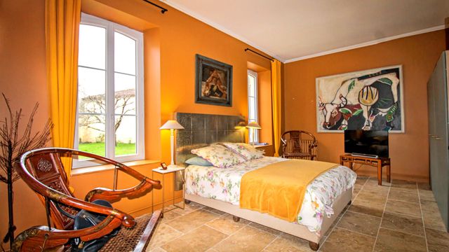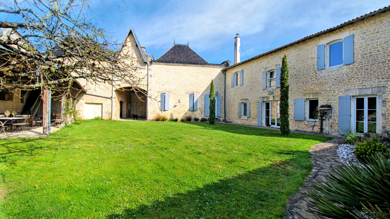 Built in the 18th century this property originally formed the masters house and chai to store the casks of eau de vie and cognac. Totally private, behind the imposing carved stone entrance, the walled garden and covered terrace are an oasis of calm and privacy.