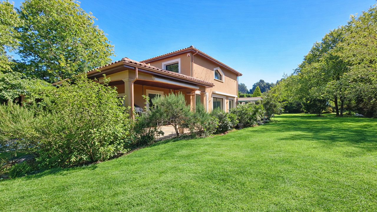 A42463DVI69 - Nestled in a sought-after residential area, this 308 sq m architect-designed house captivates with its contemporary elegance, enhanced by refined Asian influences. Two antique doors brought from India and Rajasthan, along with a thousand-year-old olive tree at the center of a spectacular patio, lend the property a rare and unique character.