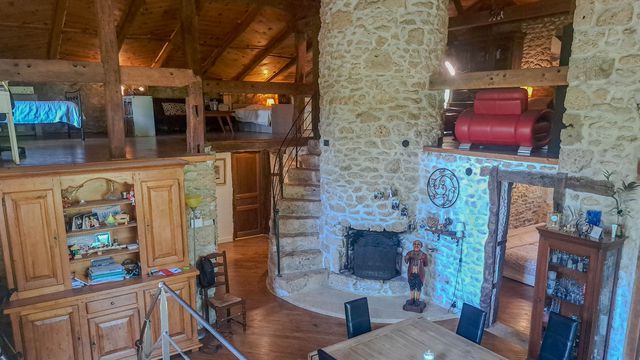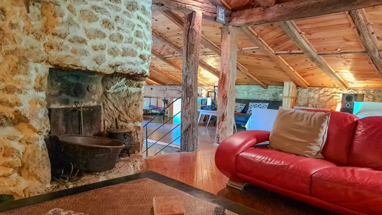 A29787SEF82 - In a peaceful and verdant setting, discover this character property. The main house of 170 m² blends old-world charm with modern comfort, featuring three bedrooms including two master suites, a bathroom with a laundry area, and a fully equipped kitchen. The spacious dining room of 40 m² opens onto a large conservatory and boasts a wood stove and a central fireplace with a double hearth. A 60 m² mezzanine overlooks the main room, offering versatile space. The 120 m² gîte, currently operational, includes a 20 m² living-dining room with an insert fireplace, a small mezzanine, a master suite, a troglodyte bedroom, another bedroom, and a fully equipped kitchen, with direct access to its own private pool. Enjoy over 2.5 hectares of land with a private forest, a dovecote, a barn, and a bread oven. Ideal for family or professional projects, this property offers an exceptional living environment with two private pools.