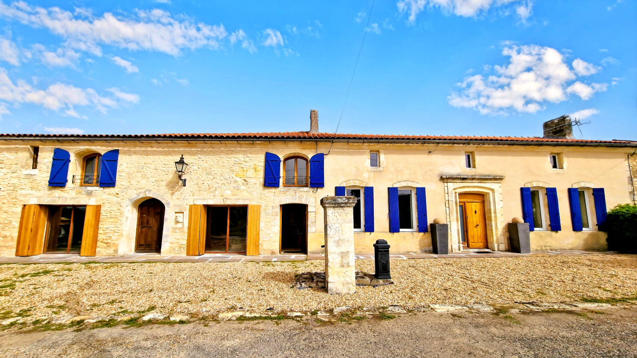 A41547SAG33 - Beautifully renovated stone property in the heart of the Lussac vineyards, consisting of three adjoining houses (192 m², 176 m² and 124 m²), ideal for a large family, multigenerational living or a gîte/holiday rental project. The ensemble offers a total of 492 m² of living space and combines historical charm with modern comfort.
