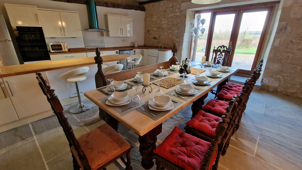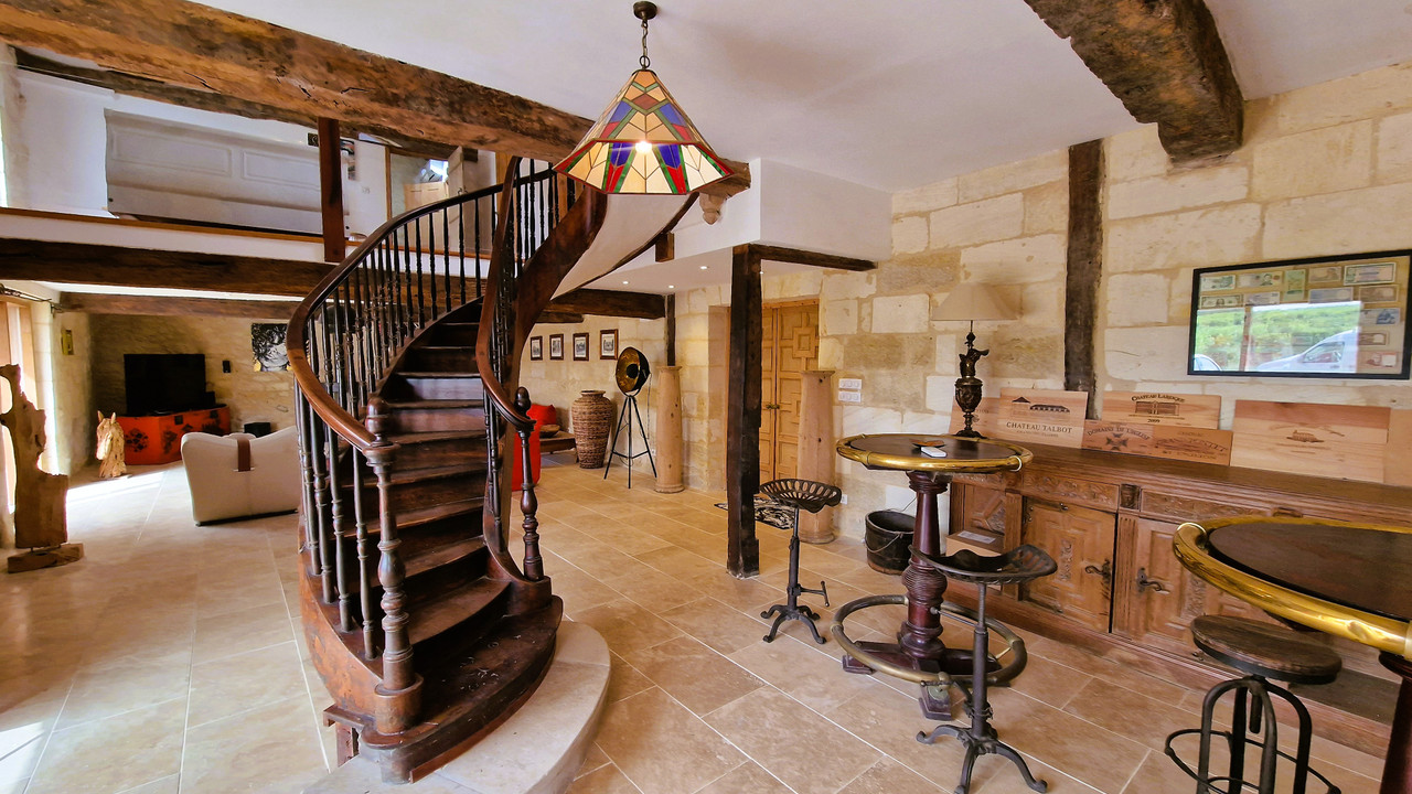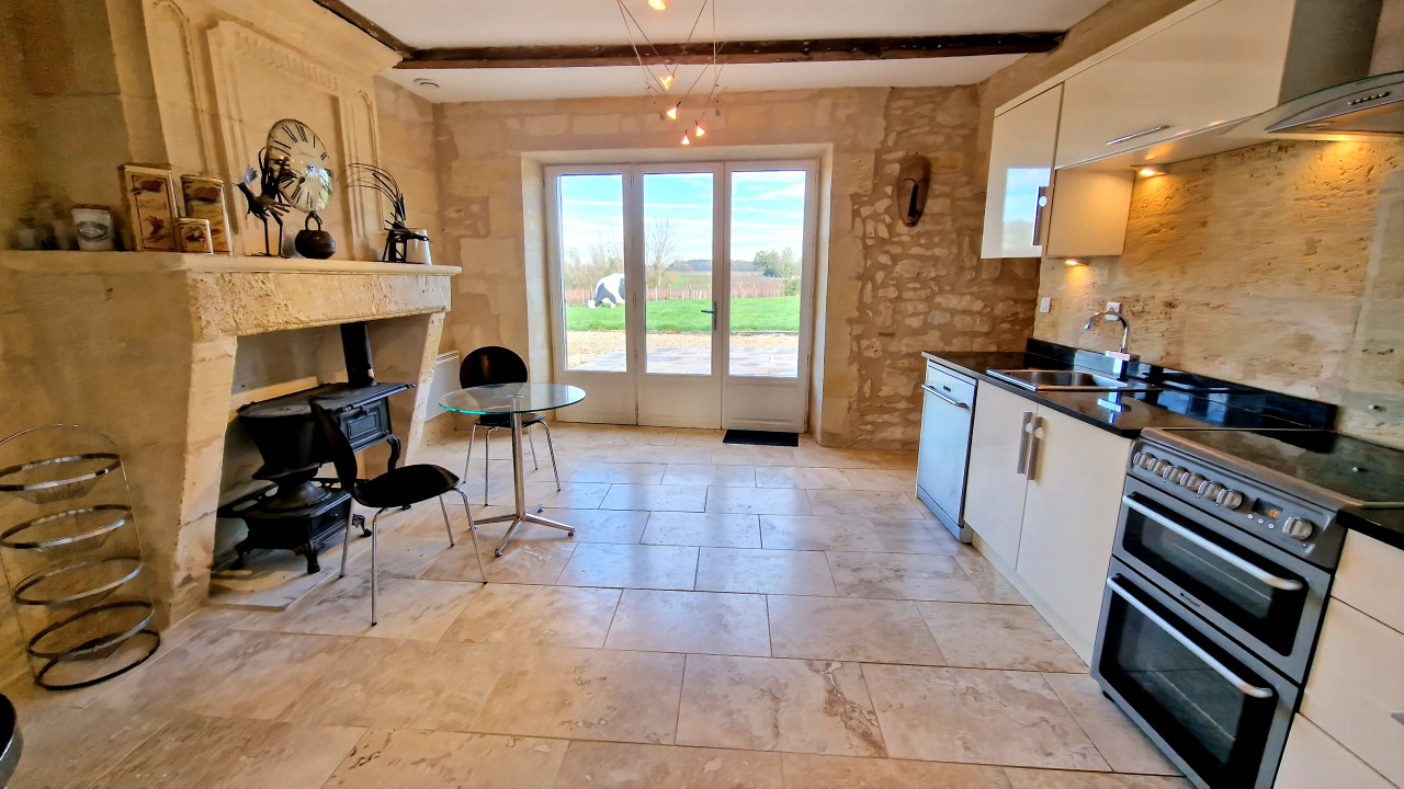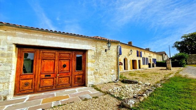 A41547SAG33 - Beautifully renovated stone property in the heart of the Lussac vineyards, consisting of three adjoining houses (192 m², 176 m² and 124 m²), ideal for a large family, multigenerational living or a gîte/holiday rental project. The ensemble offers a total of 492 m² of living space and combines historical charm with modern comfort.