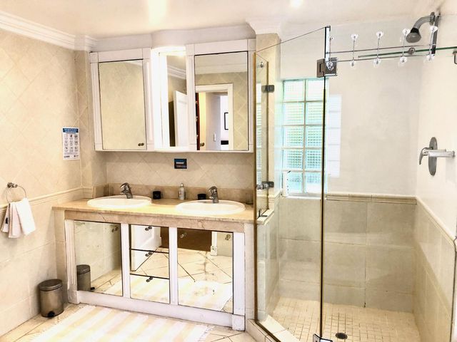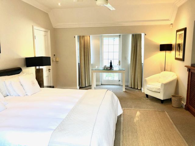 The villa is set on large grounds providing total privacy and tranquillity. This Cape Dutch-styled beauty is built with attention to detail and use of good materials which will impress the most discerning buyer. The house, designed for today’s lifestyle with luxury and maximum comfort in mind, is an entertainer’s dream. The lush gardens have mature trees, a sparkling swimming pool where you can relax on sun loungers, several patios and a barbecue area. The villa has a lounge with fireplace, TV room, dining room, a large country-styled kitchen and 4 en-suite bedrooms. A separate cottage has a fully equipped kitchenette, a private patio, a seating area and a bedroom en-suite. The property offers a total of 5 bedrooms en-suite some with living area and kitchenette. Luxury properties with these specifications are seldom offered to the market. The villa is momentary generating an excellent income as a holiday house www.airbnb.co.za/rooms/14002645.