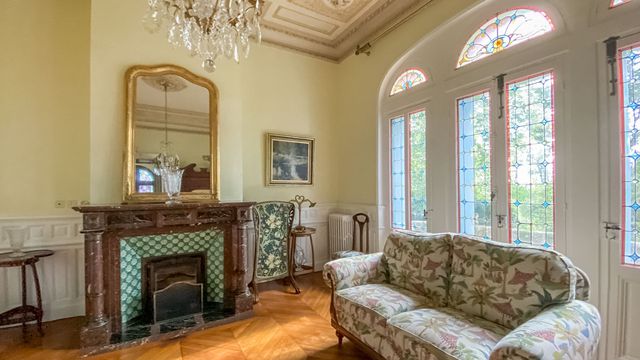 Enter either through the driveway or the pedestrian original gate takes you to the ornate Chateau abundant in detail and beauty. Ornate ceilings in the entrance hallway and in the drawing room you will find vaulted ceilings and original marble fireplaces. All the original wooden floors are in excellent condition. Functioning original wrought iron radiators throughout.