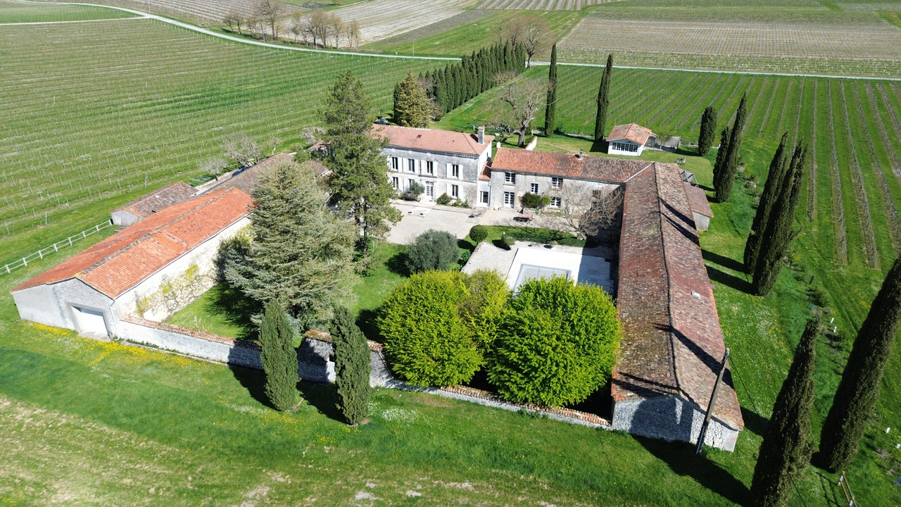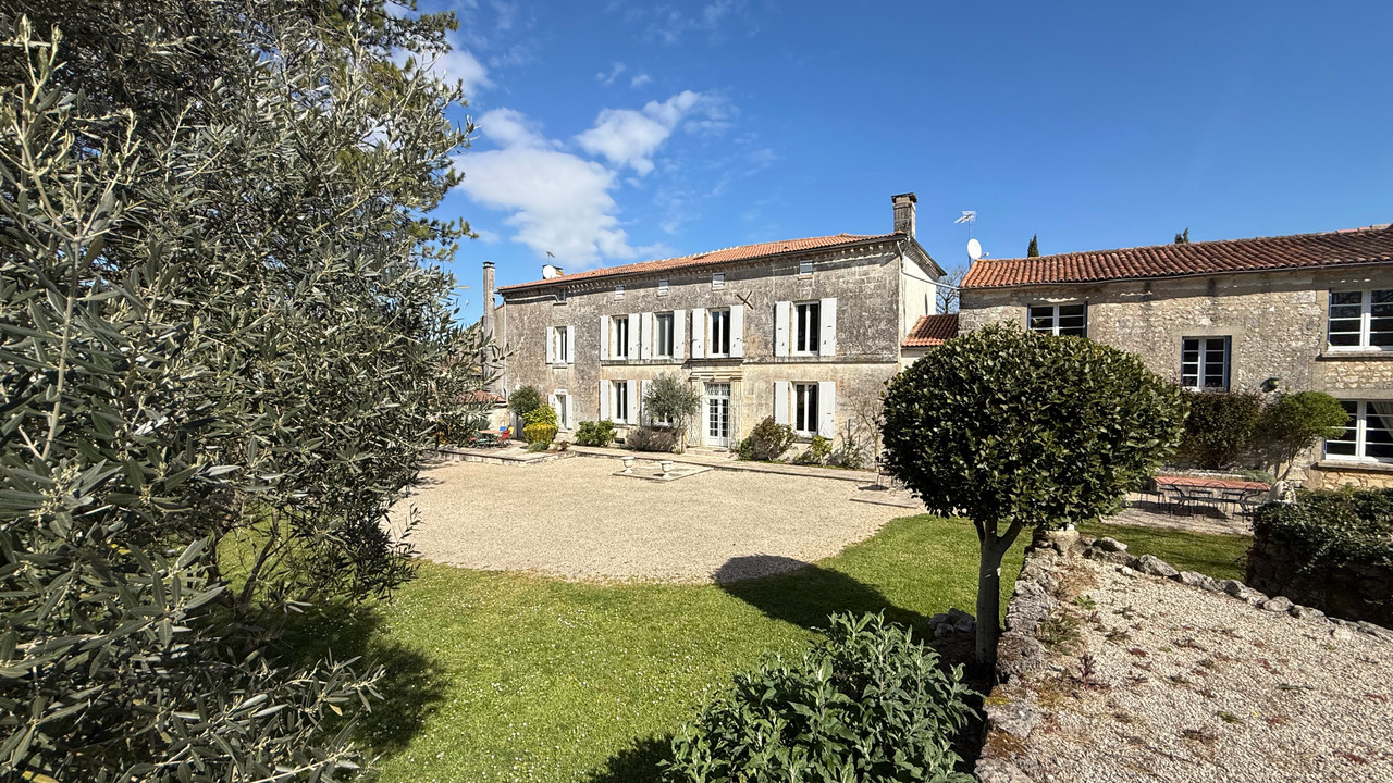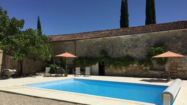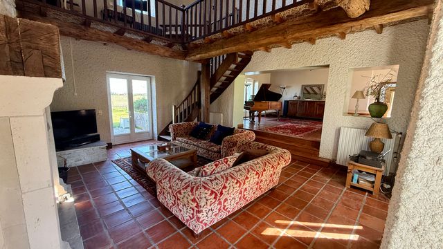 A43678ET16 - Set among the vineyards of Grande Champagne, this charming, spacious former Cognac estate offers privacy without isolation, just minutes from lively Châteauneuf-sur-Charente. Renovated over time, it comprises a generous main house, an adjoining cottage (independent or connected), and a separate 3-bedroom cottage. High ceilings and beautiful local stone create a light, airy feel throughout. In total, 8 bedrooms. A striking double-height living space with mezzanine and large fireplace with wood burner is a standout feature. Outside, a wraparound garden and an elegant central courtyard with pool provide superb outdoor living. Substantial barns (with potential), garage and large workshop, plus ample parking. Fibre internet installed. Ideally located: 1h15 to Bordeaux, 25 min to Angoulême, 20 mins to Cognac town and under 1h to Atlantic beaches.