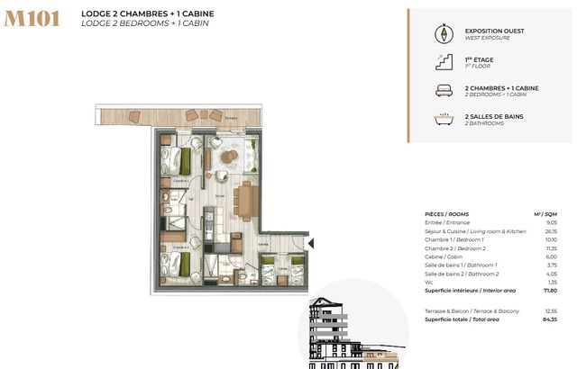 A39679JQB73 - 15 unique SKI apartments are available in this brand new off plan resort development, ideally located by the piste in a prime location and offering outstanding amenities. The prices range from 745,000€ to 1,900,000€ (1 bedroom plus cabine bedroom 45m² to 3 bedrooms plus cabine 101m²) and offer an excellent return on your investment.