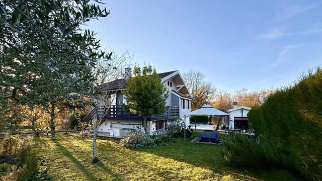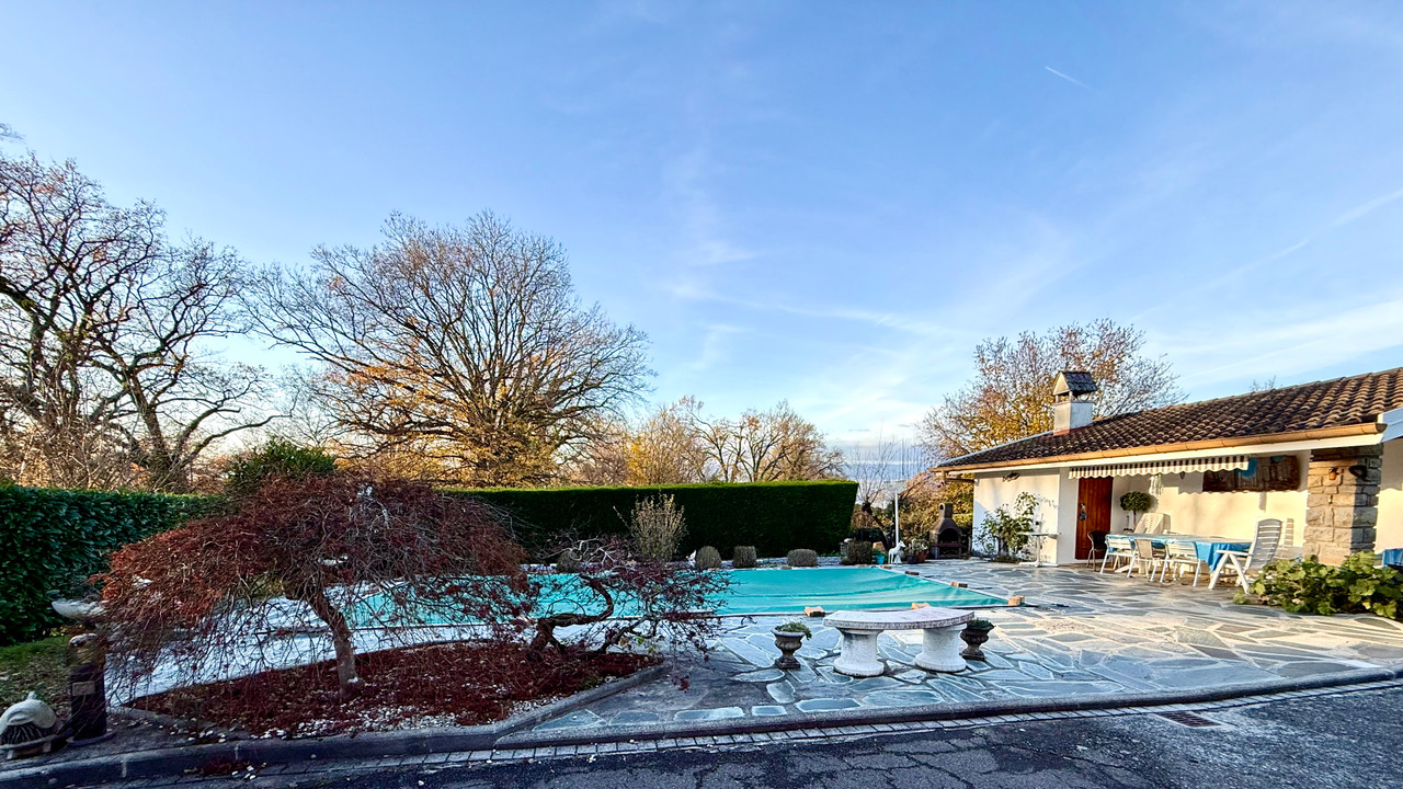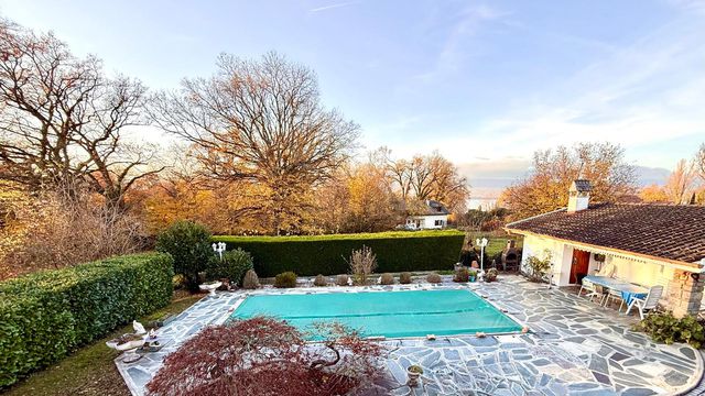 In Yvoire, discover this 112 m² house with views of Lake Geneva and a 1,180 m² wooded garden (with a swimming pool and garage/pool house) in a preserved natural environment.