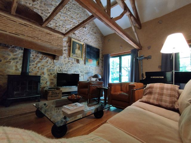 There is access to the rear garden also from the kitchen and to the lounge. Once in the lounge (5.4m x 8.02m ) there is a WOW factor. Full height beamed ceilings, there is a large chimney breast with log burner which has a back boiler and provides the heating via a heat converter, bespoke furniture also includes a C J Bechstein piano which will remain in the asking price.