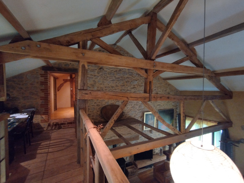 To the right of the terrace you will find a large greenhouse/potting shed and the kitchen garden with a variety of fruit and vegetables. A small pond encircles its own island cabin perfect for childhood adventures !! As you continue you arrive at a secluded salt water swimming pool (8m x 3.75m) surrounded by a sun terrace. The Pool is insulated to retain heat naturally and can be accessed from the left side of the outdoor dining area. From here you can access a paddock, a spacious hanger ( approximately 132m2) and other outbuildings previously used as a chicken coop.
