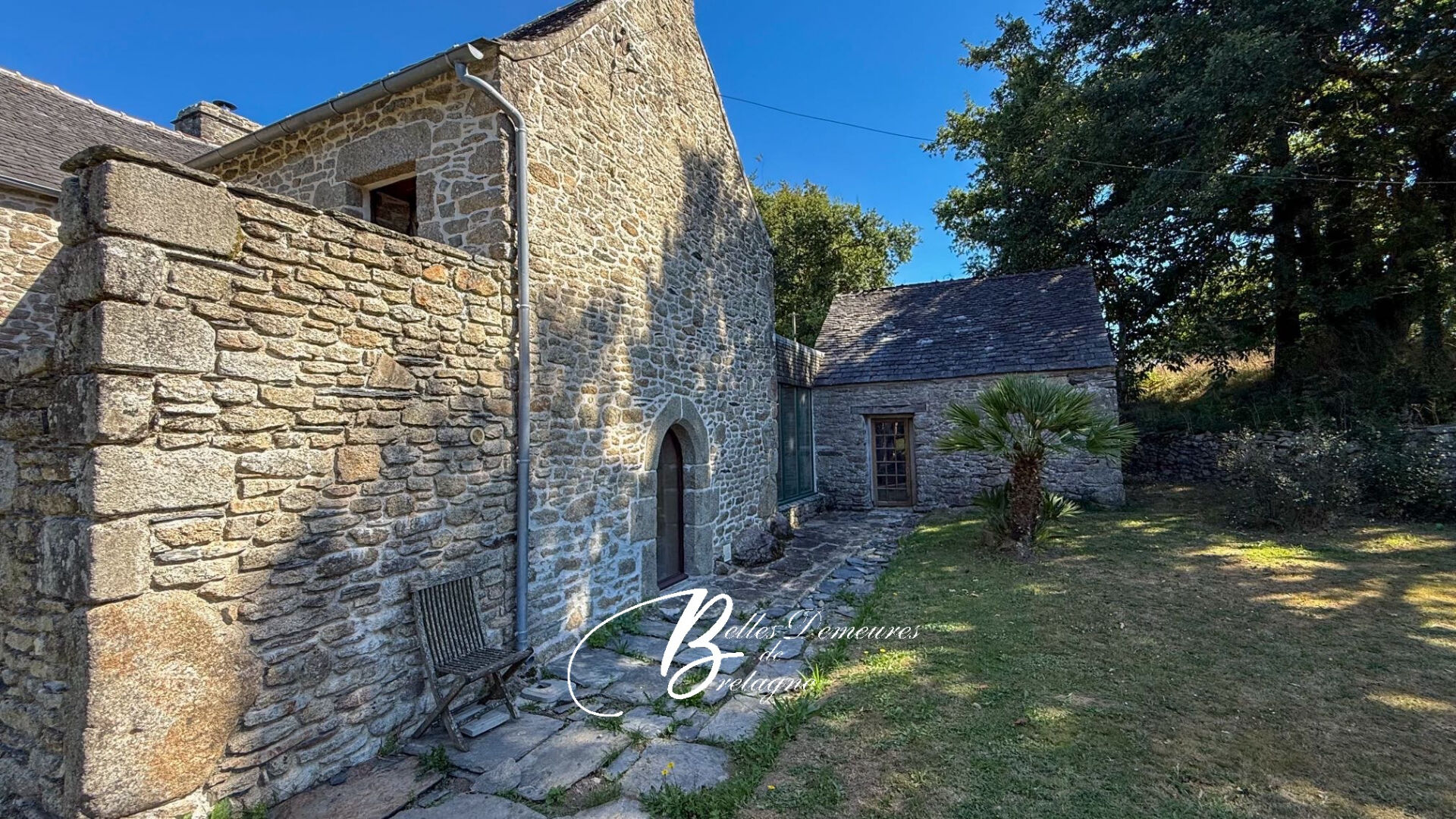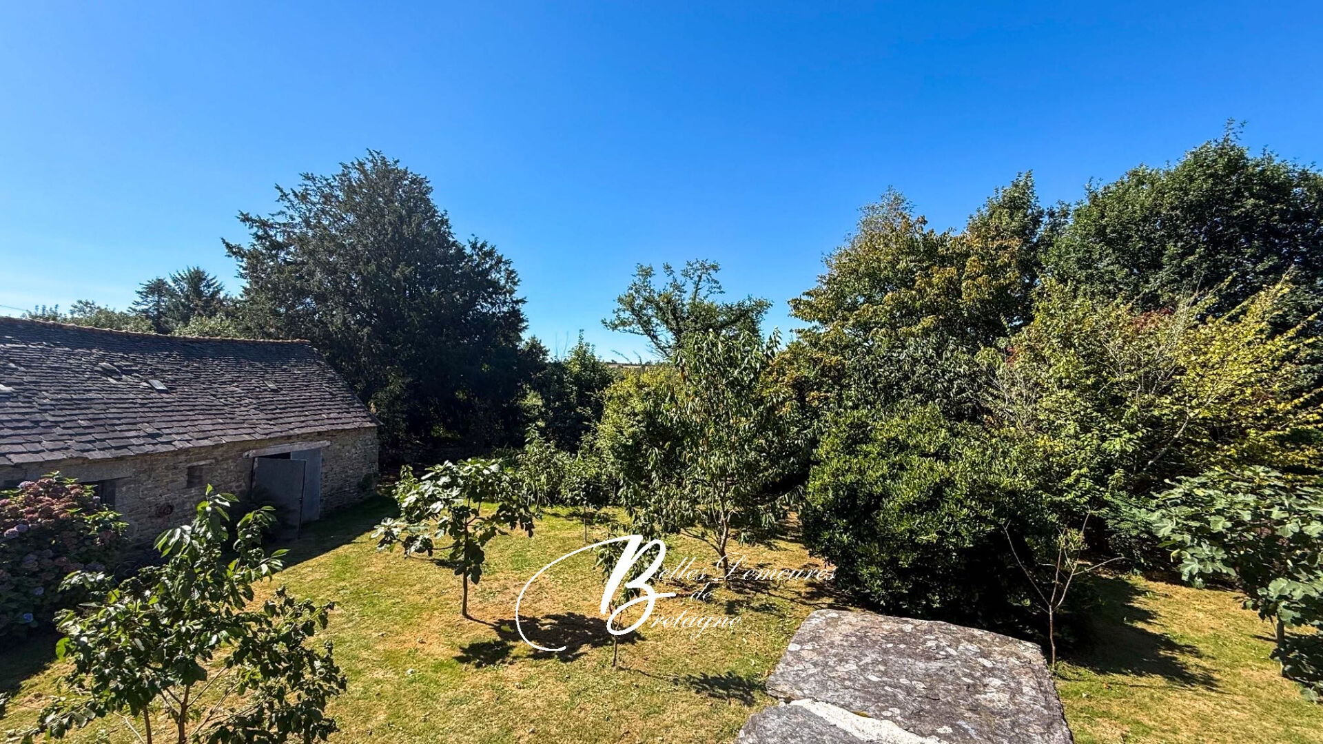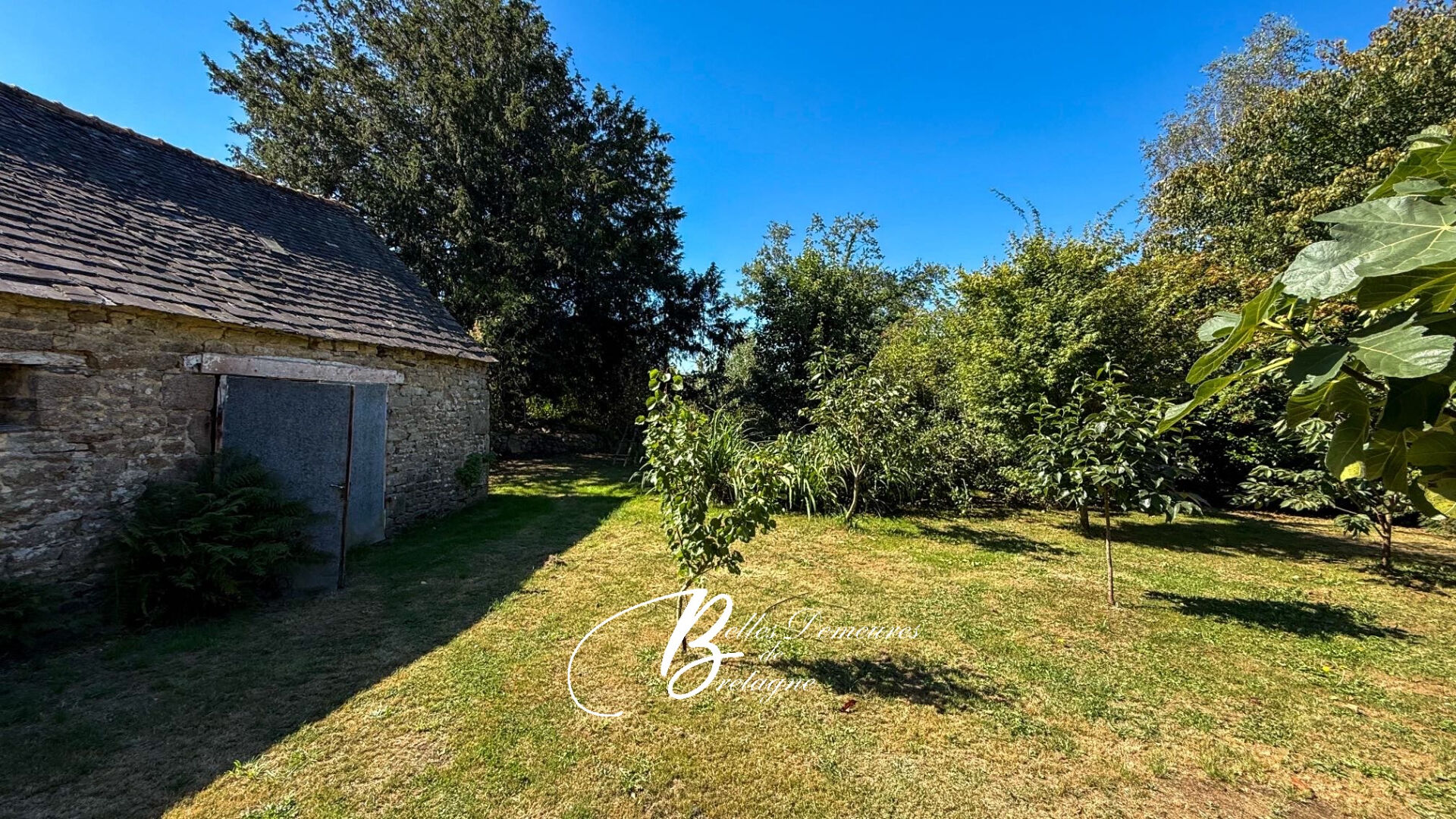 On the garden side, there is a large orchard area, as well as a former stable serving as a storage room.