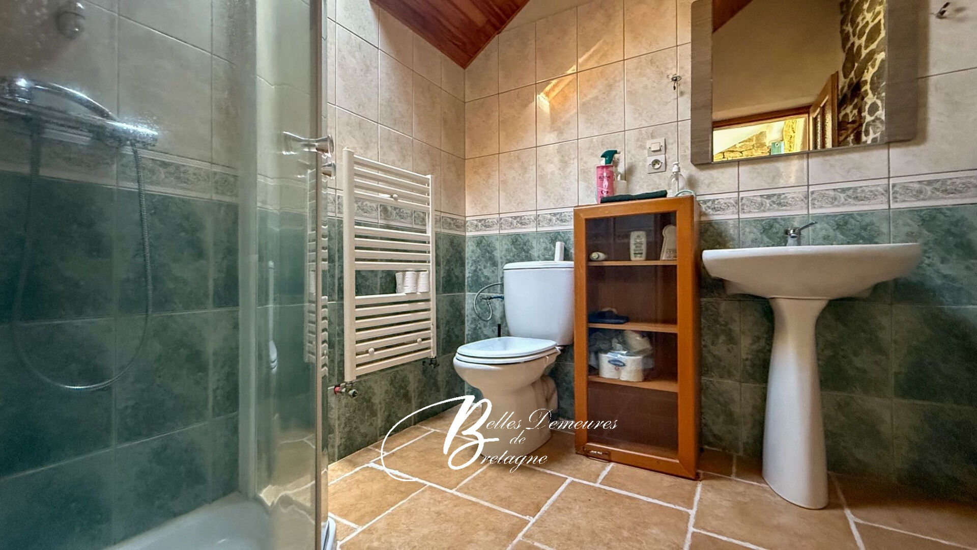 You will also find on the ground floor a bathroom with a toilet, a boiler room, and a cellar. (Possibility of creating a bedroom of approximately 30 m² in an adjoining outbuilding.)