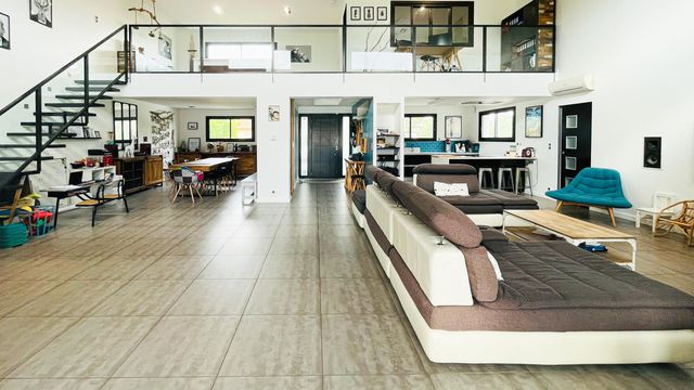 Main living area with a 5.30 m high ceiling, providing brightness and a spacious feel.