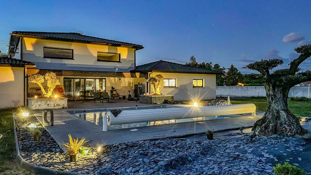 For sale: House of 250 m² on a 2,130 m² plot. 100 m² garage, 7 m x 7 m swimming pool, and pool house