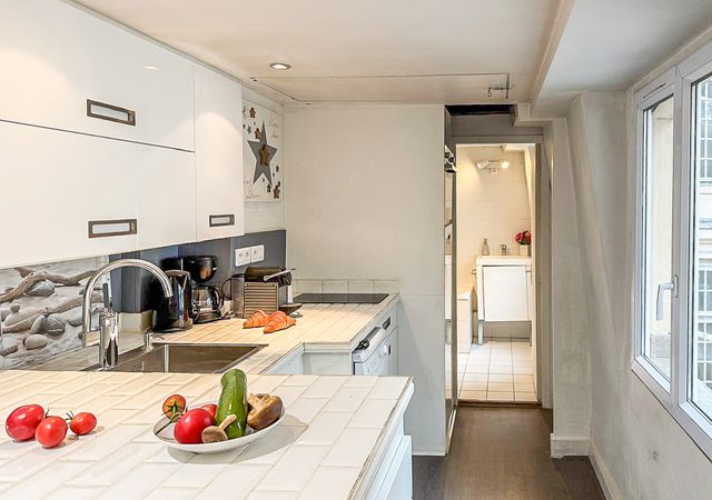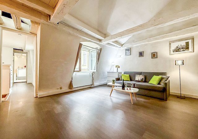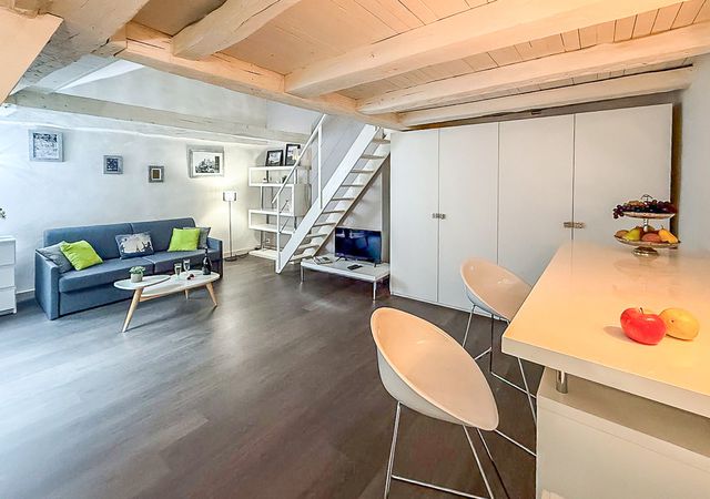 A43136CCH75 - Paris 4th arrondissement – Île Saint-Louis/Notre-Dame neighborhood. In the heart of Île Saint-Louis, on Rue Saint-Louis-en-l'Île, this property for sale is located on the 3rd and 4th (top) floors of a four-story building with a courtyard, built in 1700. It is accessible via the common stairwell and then via a private staircase on the 3rd floor. Renovated with optimized space, this duplex apartment, with a surface area of 45m2 ( Loi Carrez 34.12 m²), is laid out as follows: a 22.56 m² living area with a living room and dining area, a fully equipped kitchen, a bathroom with a bathtub/shower and toilet, and a bedroom with a skylight on the mezzanine level. Additionally, there is an attic with a total floor area of 10 m². Quiet, with a northeast-facing orientation. An exclusive opportunity not to be missed by Leggett Paris Prestige. Information about risks to which this property is exposed is available on the Géorisques website : https://www.georisques.gouv.fr