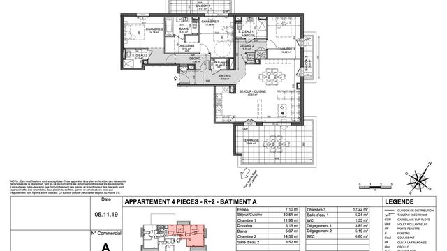 A20146SST06 - Cannes, a bright high-end 4 rooms apartment resolutely optimized with large bay windows overlooking a beautiful south-facing terrace with a sea view, on the heights of Le Cannet, overlooking the village of Cannet, with a breathtaking view of the Mediterranean sea and his park, 3 bedrooms apartment – 116,57sqm + 25sqm terrace– south facing - near the centre of Cannes. This is a spacious, quiet and functional property with a well-designed living space offering all the comfort of a new build residence ready to move by the end of March 2024.