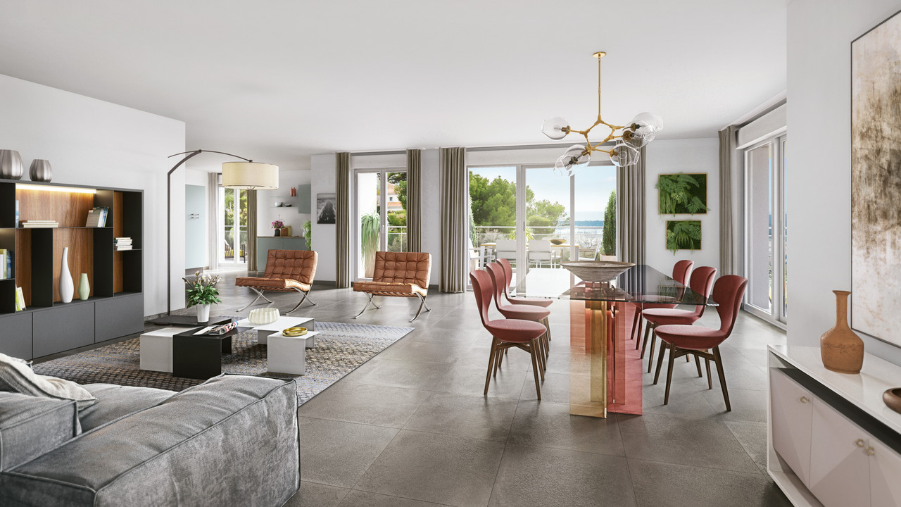 Le Cannet, an exceptional high-end 3-bedroom apartment with a sea view terrace onto the Cannes Bay.