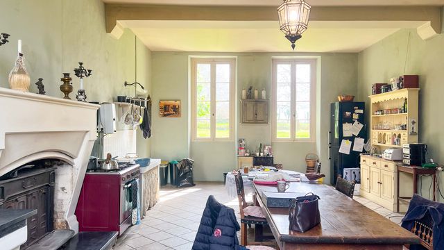 A35819MIR17 - The current château, built in 1860 is a fine building with over 550m2 of living space in the main building. This currently provides 9 bedrooms, with potential to expand this further. The château has retained much of its original details and has large windows with views across the 2.9 acres of parkland. It is a fine example of neo-Gothic architecture The spaces are large with very high ceilings and certainly would impress should this property be purposed for use as a wedding, event location or hotel. There are a number of staircases and some impressive reception rooms throughout the property, including a billiard room and a number of grand salons and reception rooms. The kitchen is over 40m2 and would convert well to a professional kitchen if required. The château is part way through its renovation. Much of the decoration remains to be finalised. The heating is provided by wood burning stoves, and there is a fosse septique recently installed.