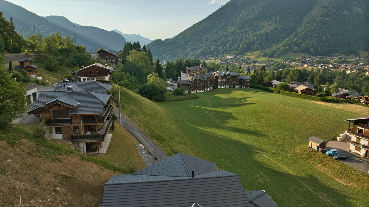 A38220JEH74 - Ideally located on the heights of Morzine, in the heart of the Portes du Soleil international ski area, this 1,698 m² plot enjoys a rare and sought-after location. It offers spectacular panoramic views of the village, Montriond, the surrounding mountains, the Super-Morzine area, and the Pointe de Nyon.