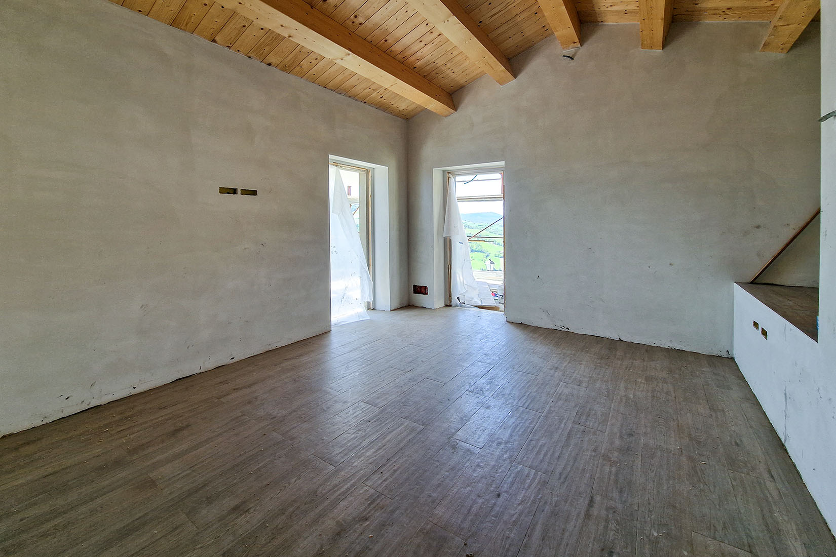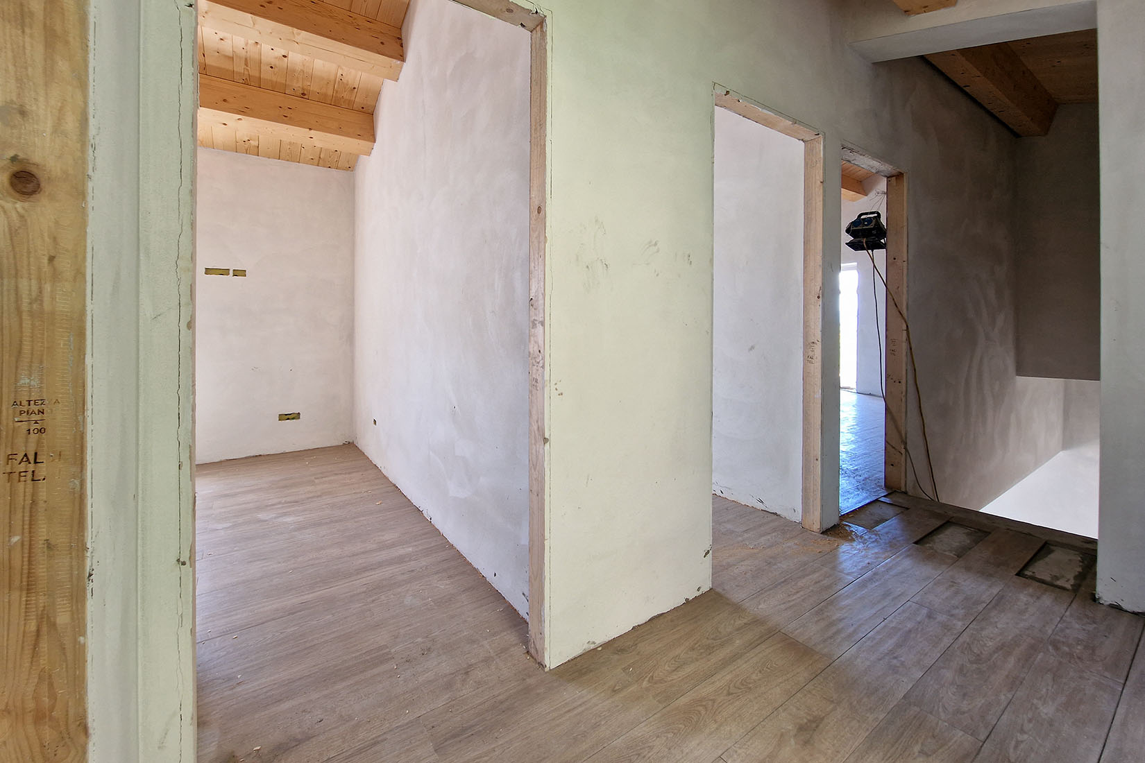 The town house has at the ground floor its independent entrance through the main door which leads to a spacious open space of about 50 m2 which houses the living, dining and kitchenette areas, from which to access the exciting covered terrace, with astonishing view of the Sibillini Mountains, on the same floor you can find a utility room, a pantry and a comfortable bathroom.