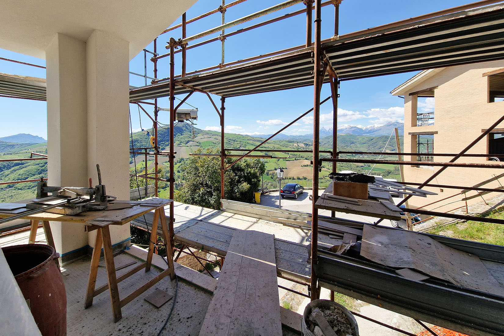 The town house measures approximately 145 m2 on two floors, in addition there are on the ground floor a covered terrace (loggia) of approximately 10 m2 and on the first floor a terrace partially covered (loggia) partially not of 20 m2 approx, both overlooking the Sibillini Mountains!