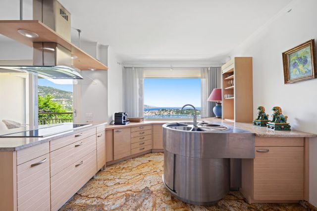 All in a wooded calm garden of 2200sqm, surrounded by imposing pines, it is a real forest enjoying a breathtaking view of the bay of Villefranche and Cap Ferrat.