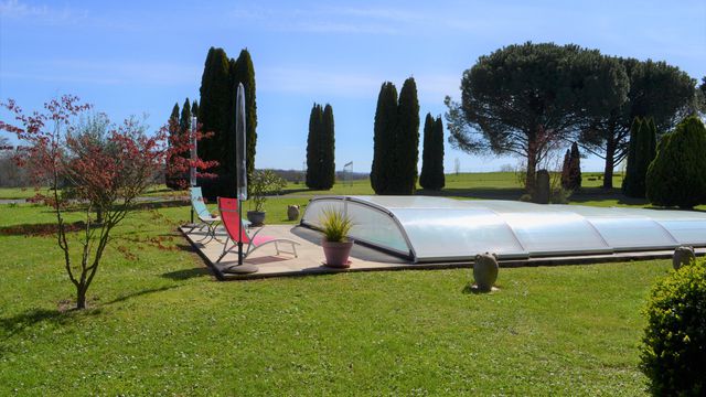 Nice village property with 4 bedrooms, office, swimming pool, garages and 2 hectares, 25 min from A