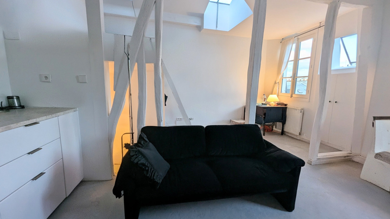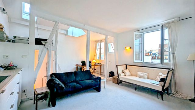 A43422MRH75 - In the 11th arrondissement of Paris, close to the Marais, Leggett Immobilier presents a stunning renovated apartment — an elegant 51 sqm cocoon. it's features 3 main rooms plus an open mezzanine office space, an open-plan kitchen, one bedroom, a shower room, and separate toilets. The property benefits from triple exposure (South, East, and West), ensuring beautiful natural light throughout the day. Located on a quiet courtyard, on the top floor of a mid-19th-century period building, the apartment is accessed via a wide oak staircase. The apartment was fully renovated in 2022 by a renowned interior designer and has been featured in a prestigious interior design magazine. It offers a view of the top of the Bastille column and potential for a rooftop terrace (subject to approval). This is a well-located property, ready to move into immediately. The apartment is very well connected, with metro lines 1, 5, and 8, RER lines A and D, Gare de Lyon nearby, as well as bus lines 29 and 91, Information about risks to which this property is exposed is available on the Géorisques website : https://www.georisques.gouv.fr