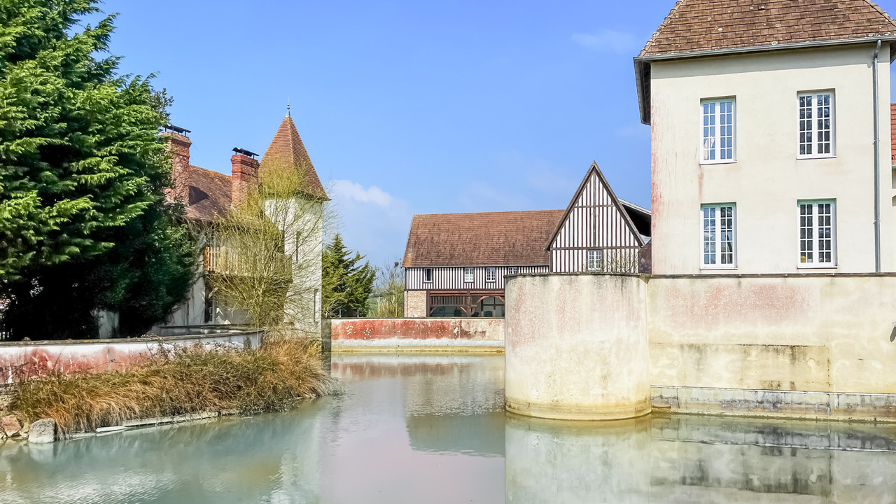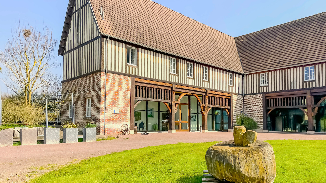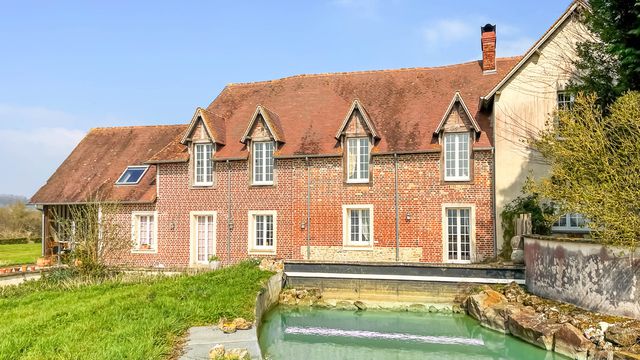 A35806YAL14 - For sale: prestigious Norman estate in the heart of the Pays d'Auge, just 45 km from Caen. Spanning more than 16 hectares, this exceptional property features a 250 m² farmhouse and a beautifully restored 315 m² timber-framed annex. The main house offers spacious living areas, exposed beams, fireplaces, and a terrace overlooking a pond. Upstairs, there are multiple bedrooms, elegant bathrooms, and access to the attic. The annex, designed as a guesthouse, includes a reception hall, kitchens, and four large suites. The estate also includes a cider production facility, agricultural barn, organic-certified orchards, and extensive outdoor amenities. Double-glazed windows, aerothermal heating, and renovated roofs ensure comfort. Ideal for a family home or professional venture, this property boasts breathtaking views of orchards, woods, and meadows.