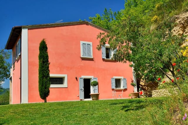 550.000 € ID: 127737Prestigious farmhouse restored for sale in Marche - Casa del Poeta. A beautifully restored 3 bedroom farmhouse with small hunting hideout in its own 8 Ha wood with olives and fruit trees. A peaceful location less than 10 minutes from the historic centre of Ascoli Piceno.