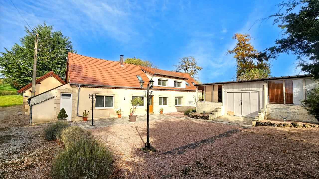 The renovated three-bedroom house offers 166 m² of habitable space. Numerous attached and detached outbuildings provide around 450 m² of convertible potential, arranged around a spacious internal courtyard. An independent living space with kitchen, bedroom, and shower room is already in place.