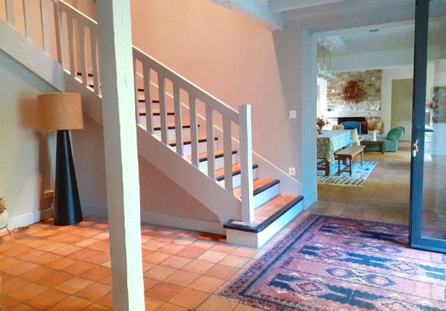 Set within a park of over 1.5 hectare, this dream property includes a magnificent, fully renovated house of 271 m² with 3 bedrooms and 3 bathrooms, a wellness space with a spa and sauna (141 m²), connected by a bright patio (this could also be turned into a guest house or a workspace ideal for business), a winter garden, a superb barn with horse stalls, a kennel, a decorative pond, and fields suitable for horses.