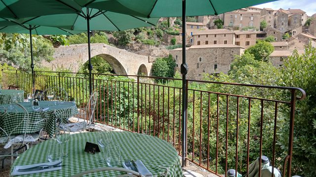A39602GUB34 - In the heart of the highly touristic medieval village of Olargues, within the Haut-Languedoc Regional Natural Park, discover this restaurant property boasting an exceptional location overlooking the historic town and the famous Devil's Bridge (Pont du Diable).