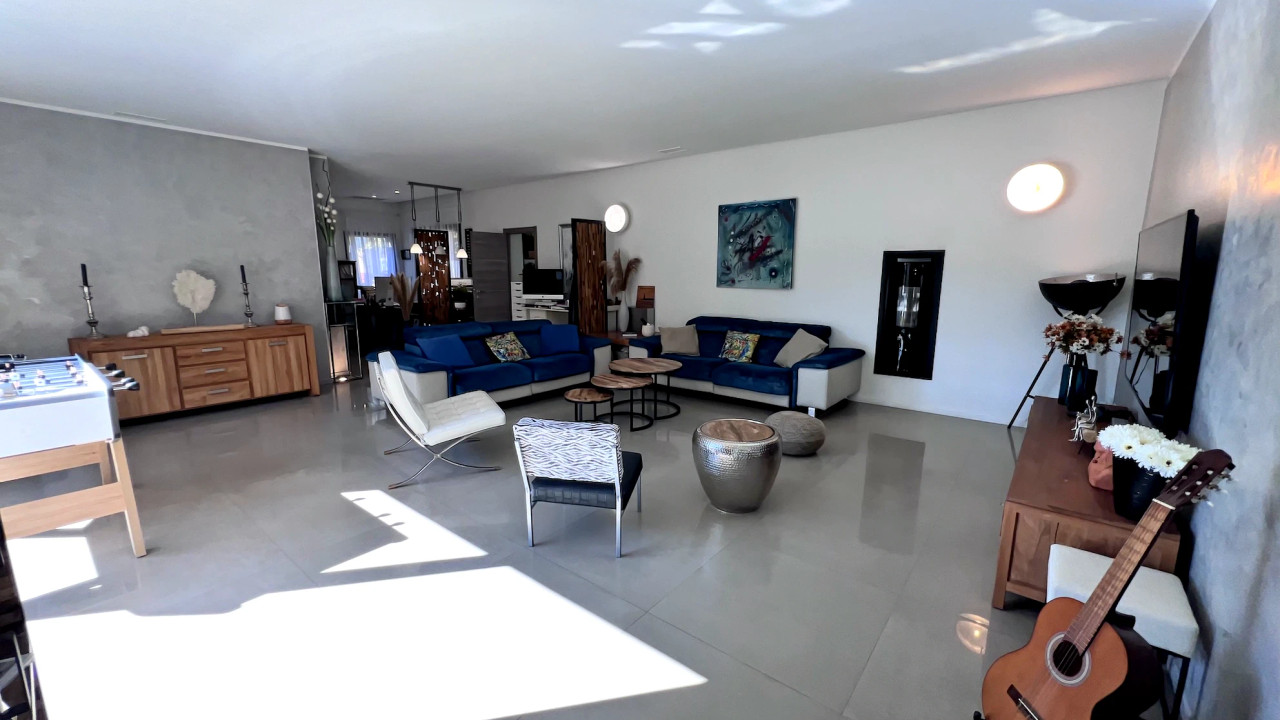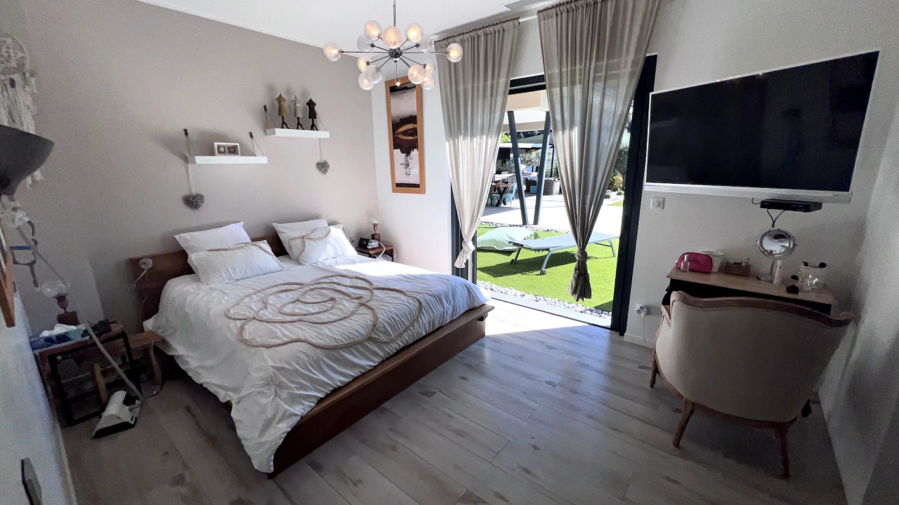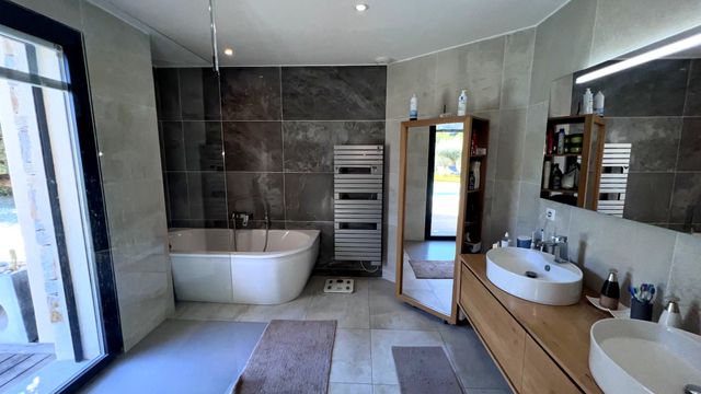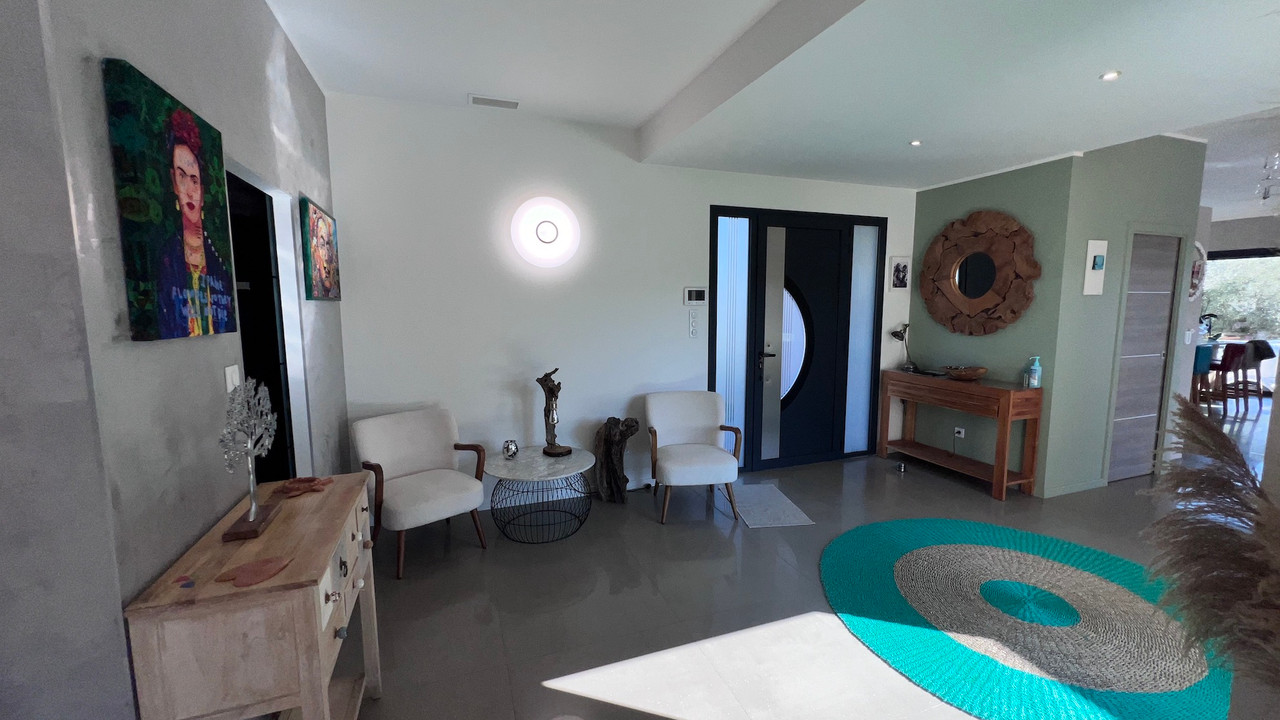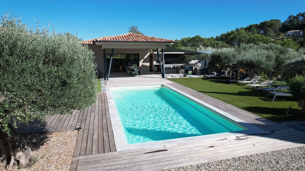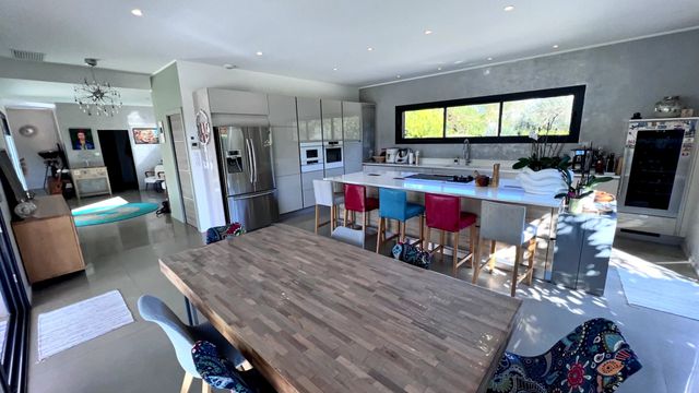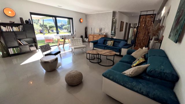 A constant spectacle that invites serenity and dream. Settled in the heart of a 2 200 sqm plot planted with olive trees and Mediterranean trees. Cozy and elegant home, high-quality materials carefully chosen to create a warm and refined atmosphere.