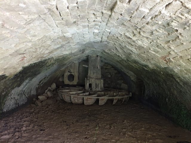 - in the basement floor where the millstones were in the past, there is a living-dining area, kitchen, bathroom