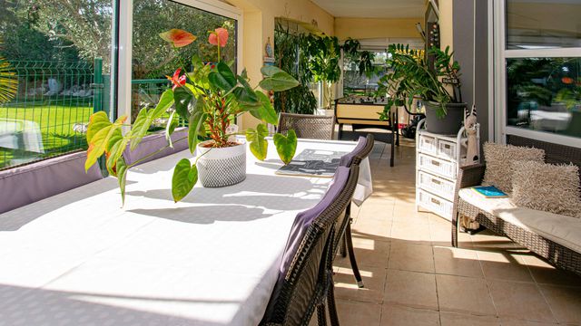 Stunning 36 m² glass veranda offering panoramic views of the pool and garden