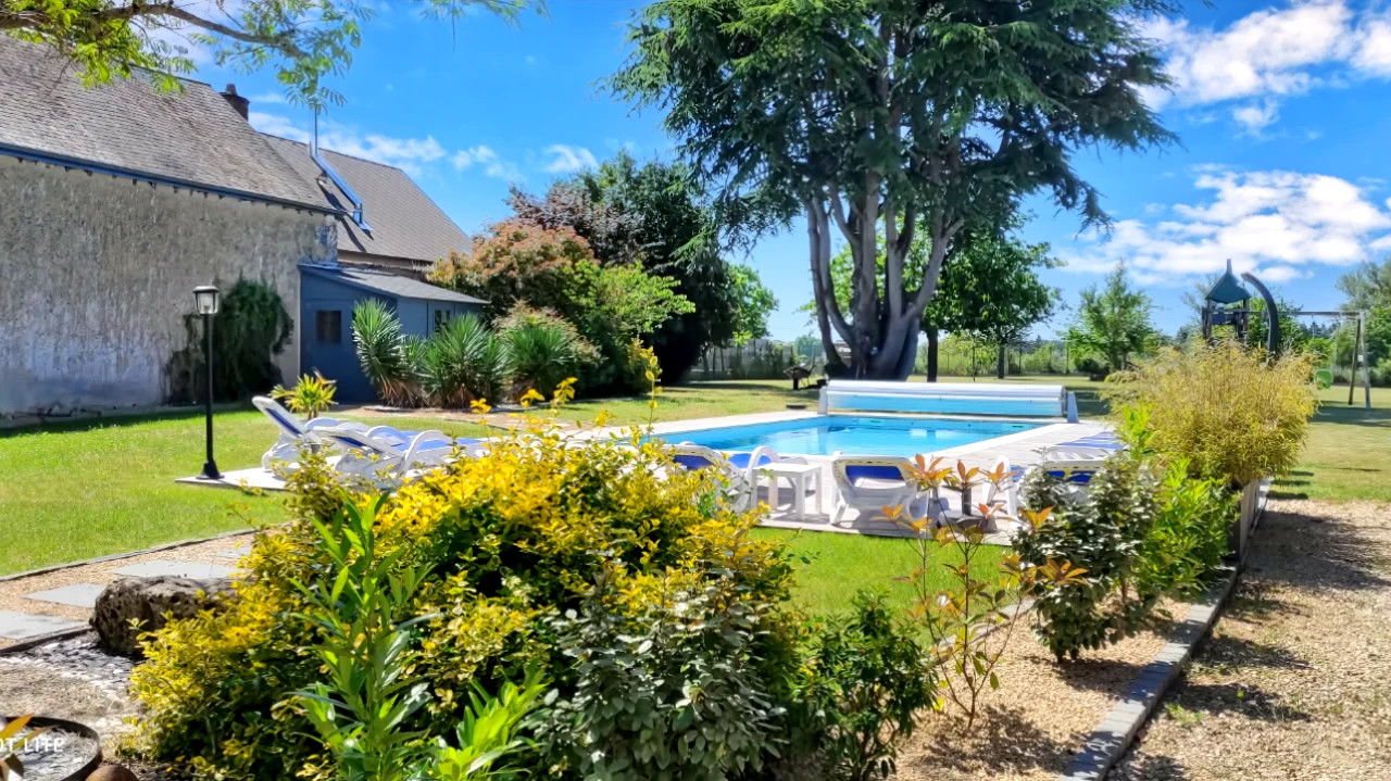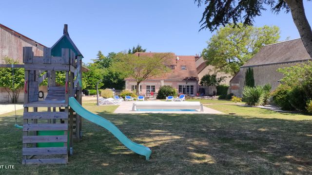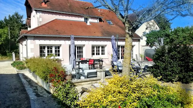 Former winegrower's farmhouse in Sologne, 25 minutes from Blois, comprising 13 rooms and 3200 m² of land in a peaceful setting not overlooked, 9x4 heated swimming pool facing south, 65 m² gîte, bowling green