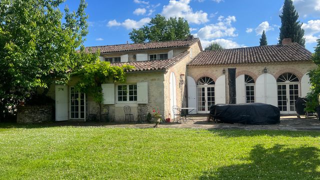 A37385VGR33 - Stunning stone house for sale near Bergerac, Dordogne, Southwest France – perfect for international buyers seeking an elegant country home. This beautifully renovated property features 7 spacious en-suite bedrooms, including a master suite with fireplace and balcony access, ideal for families or boutique B&B use. Enjoy a vast 75m² lounge with floor-to-ceiling windows overlooking large, landscaped gardens and a sparkling swimming pool. The well-equipped 23m² kitchen opens onto a generous salon, ideal for entertaining. Throughout the home, a mix of wooden and tiled floors enhances the warm, authentic character. Set in a peaceful location with easy access to Bergerac airport and local amenities, this home offers the perfect blend of traditional charm and modern comfort for those relocating or investing in Southwest France.