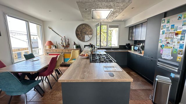 Just 30 metres from Saint-Guirec beach, you'll be charmed by this rare property offering a unique view of one of the most beautiful sites on the Breton coast. Set on approximately 700 m² of land with a garden and direct access to the beach via a small path, upstairs you will find a bright 73 m² apartment: a spacious 30 m² living room bathed in light with triple exposure, a high-quality open-plan kitchen, a wood-burning stove for your winter evenings, south-facing terrace for breakfasts overlooking the sea, and two bedrooms, one of which has a direct view of the beach. On the ground floor, a large workshop, a laundry room and a garage complete this property. Combining charm, comfort and an exceptional location, this is the ideal property to fully enjoy Ploumanac'h and the Pink Granite Coast, summer and winter alike.