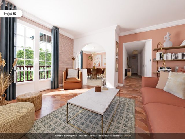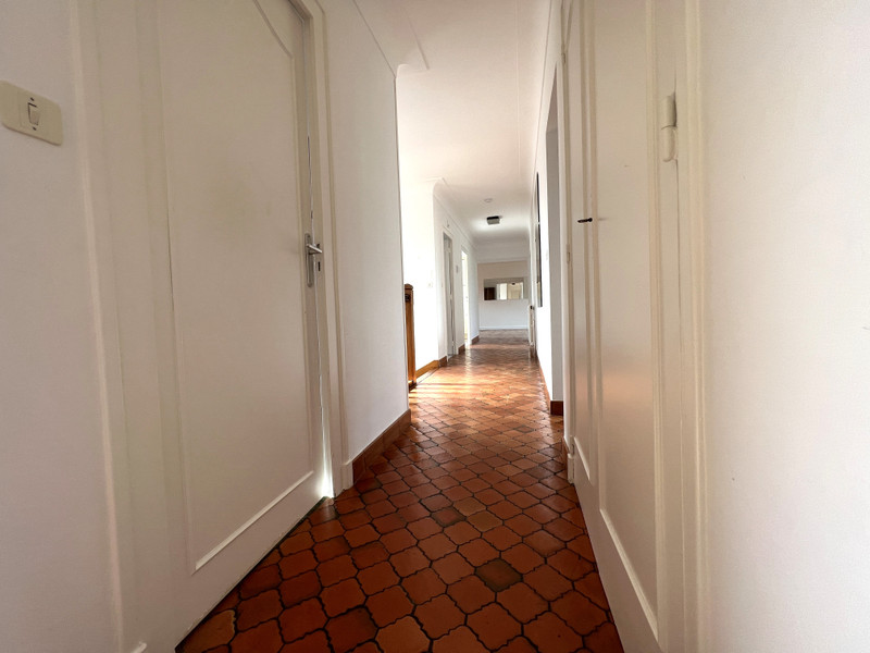 A corridor leads to a large living room and lounge opening onto a terrace with French doors and a balcony, a large fitted kitchen (possibility to open onto the living room) + 3 nice bedrooms with storage space and 2 with a shower room/bidet, a bathroom and its toilet.