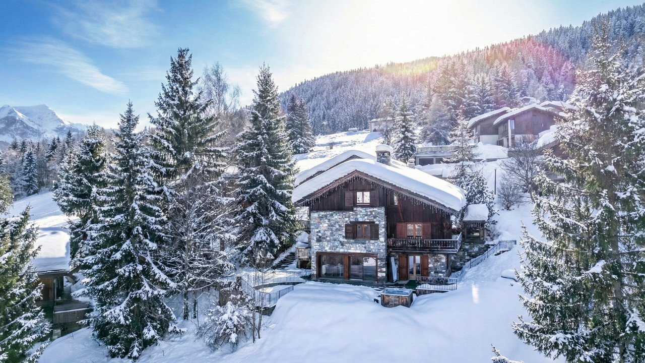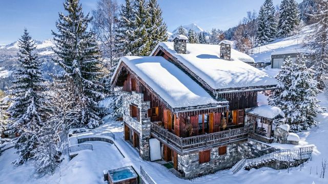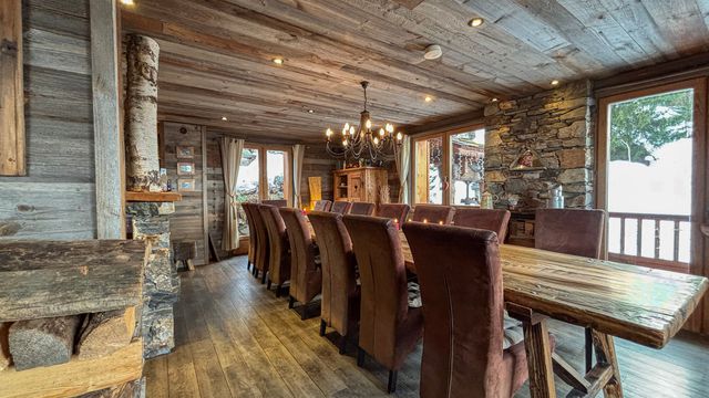 The chalet has 8 beautiful bedrooms (all ensuite), a private spa area with hammam, sauna, sensory shower, an ice fountain and hot tub with mountain views. A gym with views of the Mont Blanc mountain range completes the "espace bien etre".