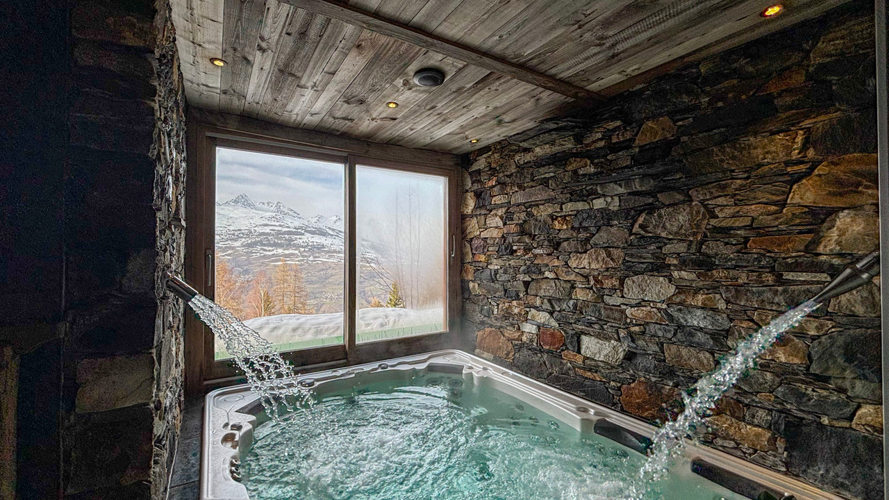 Stunning ski chalet in La Plagne with large spa, fitness room and fabulous views; sleeps 16