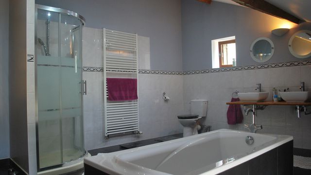 Family bathroom and wc with stand alone bath tub
