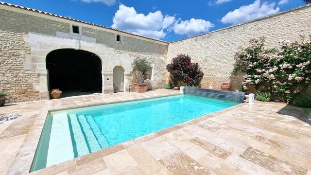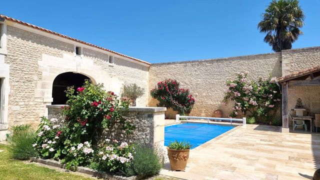 A42315MUC16 - n the heart of a peaceful and unspoilt setting, discover this superb property comprising two charming Charente-style houses, offering spacious rooms and high-quality fixtures and fittings. The main house, measuring approximately 200 m², charms with its bright spaces and authenticity, featuring a large, light-filled dining room, a spacious, warm and refined living room, a functional and elegant kitchen, a WC and, upstairs, three bedrooms including a master suite with a huge shower room and an additional shower room. Outside, there are numerous outbuildings, a shed, a cellar and a heated swimming pool in an enclosed garden with trees, offering complete privacy. The second house at the rear, perfect for entertaining friends and family or as a rental property (currently rented out), comprises a large dining room, a kitchen, a toilet, a bedroom and, upstairs, two bedrooms, a shower room and a toilet. It also has a large garden. A rare property combining character and comfort.
