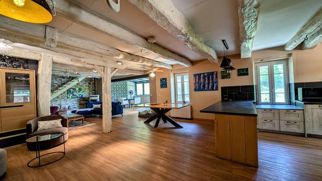 The house offers 225m2 of living space, with the added bonus of a barn, cellars, garage and workshops, all set in 1.2 hectares of land including an orchard, rock gardens, flower beds, paths, ornamental pond, relaxation areas, barbecue... A paradise for the senses!