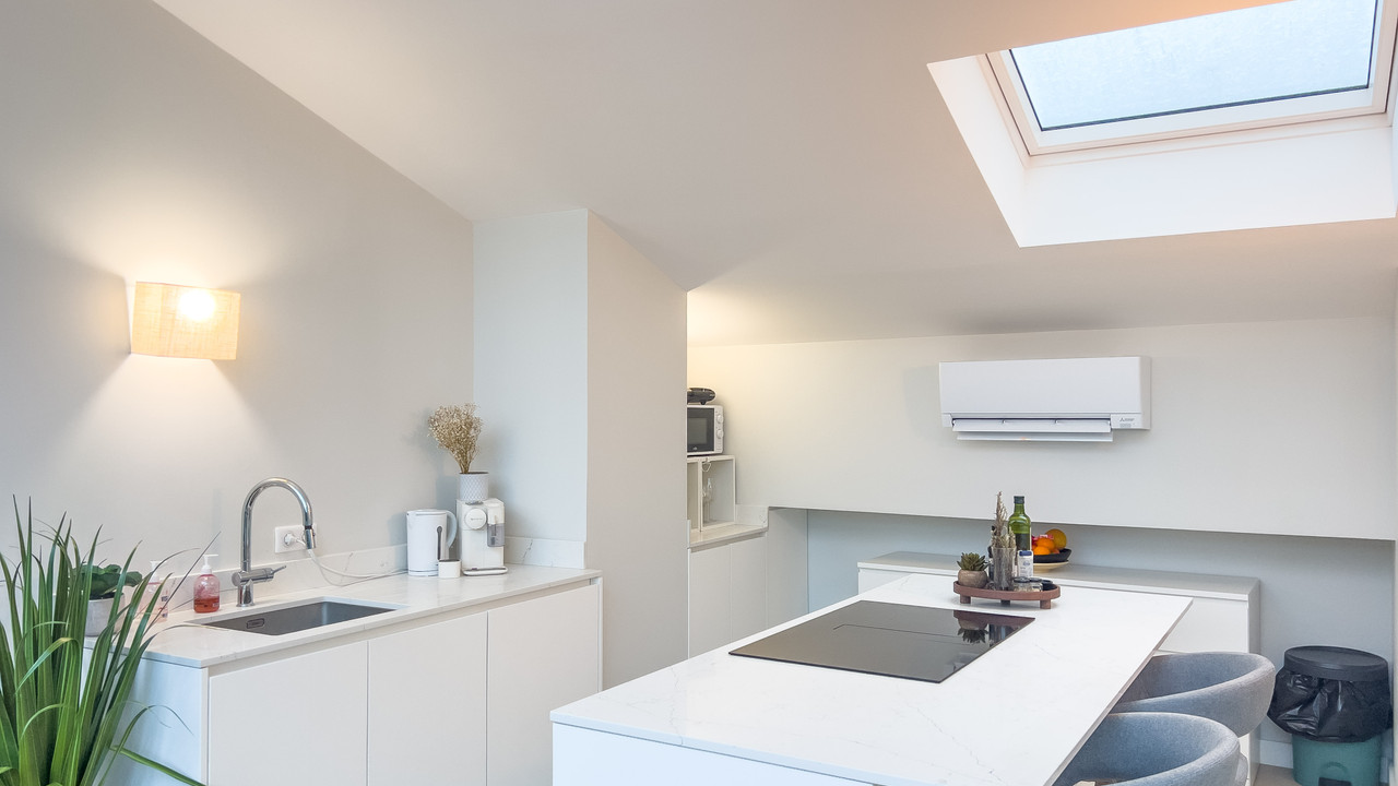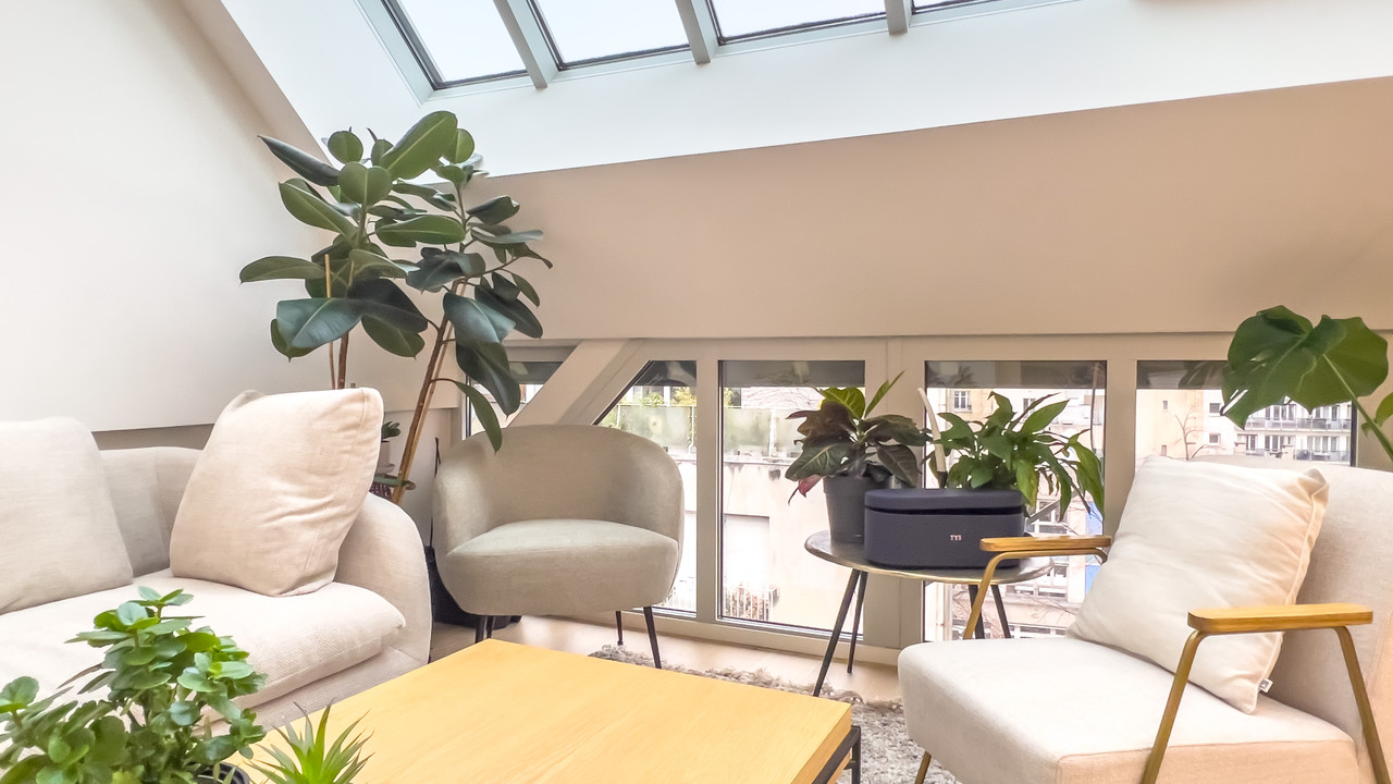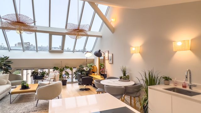 A24899DPE75 - Paris 75016 - Between Champs-Élysées and the Eiffel Tower - 87,40m2 - Exceptional top floor 2 bed fully renovated apartment in a stunning new renovation of a 1901 building originally conceived as artists' studios. This duplex loft style apartment, nestled behind a superb timber-framed facade with glazed rooves bathing the generous spaces below in light, offers a unique environment oozing Parisian chic at the heart of the Trocadéro district. The residence astutely blends the building's original artistic vocation with the über-modern, high-quality, environmentally friendly living sought by discerning 21st century buyers. The 5th floor sleeping area includes an entrance hall, 2 bedrooms, 2 bathrooms, WC and laundry. The 6th and top floor features a living room with a new contemporary, fully equipped open-plan kitchen and WC. Huge windows in the main rooms give an unobstructed view of the discreet, leafy, cul-de-sac, a rare privilege in such an exceptional location in the French capital.